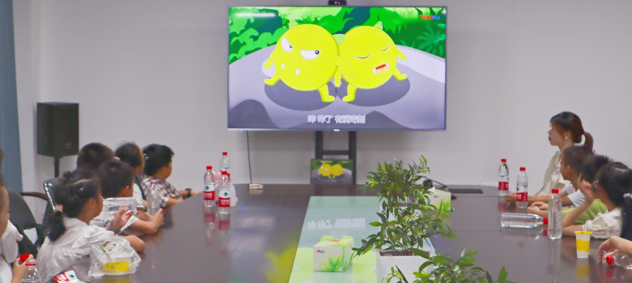 參觀完畢后,國(guó)內(nèi)營(yíng)銷(xiāo)辦公室的工作人員給小朋友介紹麗那欣相關(guān)健康知識(shí)。(麗那欣是益生菌經(jīng)熱滅活處理后得到的滅活菌體、菌體成分及其代謝產(chǎn)物。)