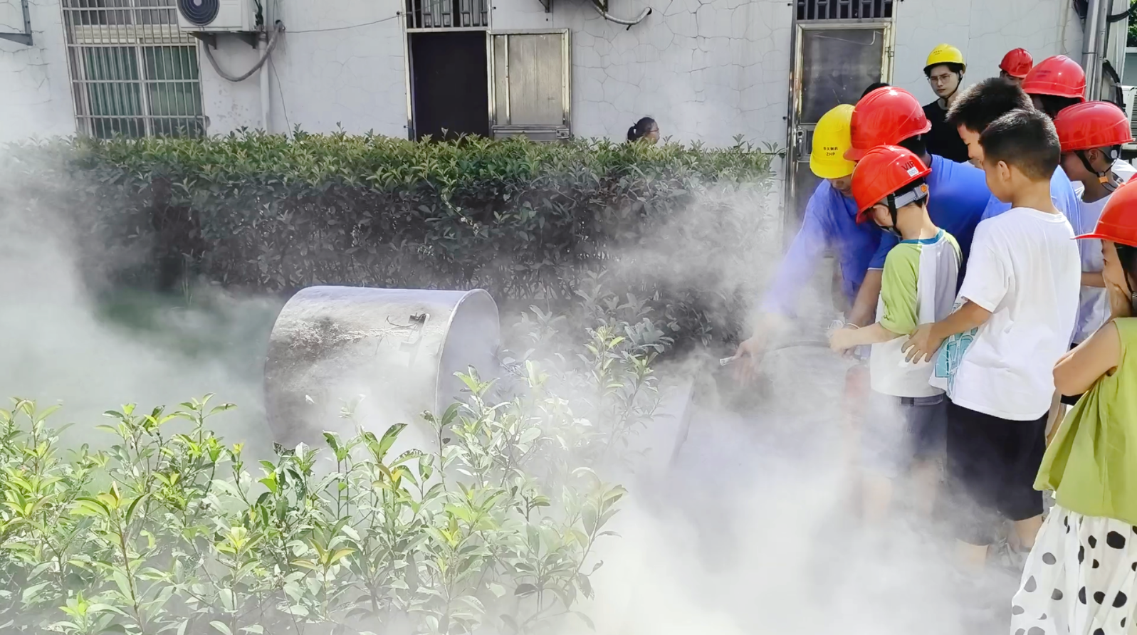 隨后每一位小朋友在工作人員的講解下知道了正確使用滅火器的步驟,并在指導(dǎo)下都親自上手了滅火器。